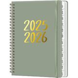 Planner 2025-2026, July 2025 - June 2026 Daily Weekly and Monthly Calendar Planner Book with Tabs, Notes Pages, Inner Pocket, Spiral Schedule Agenda A5 Notebook for School, College, Work-GREEN