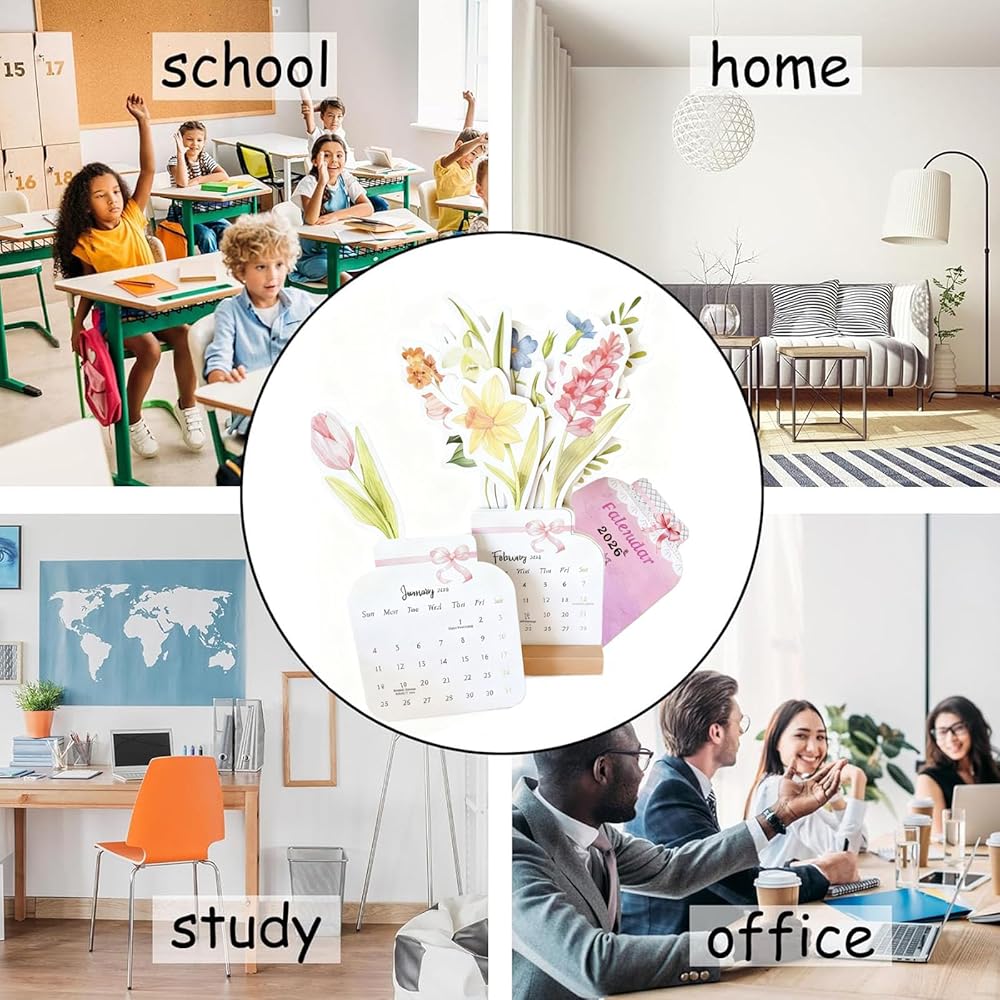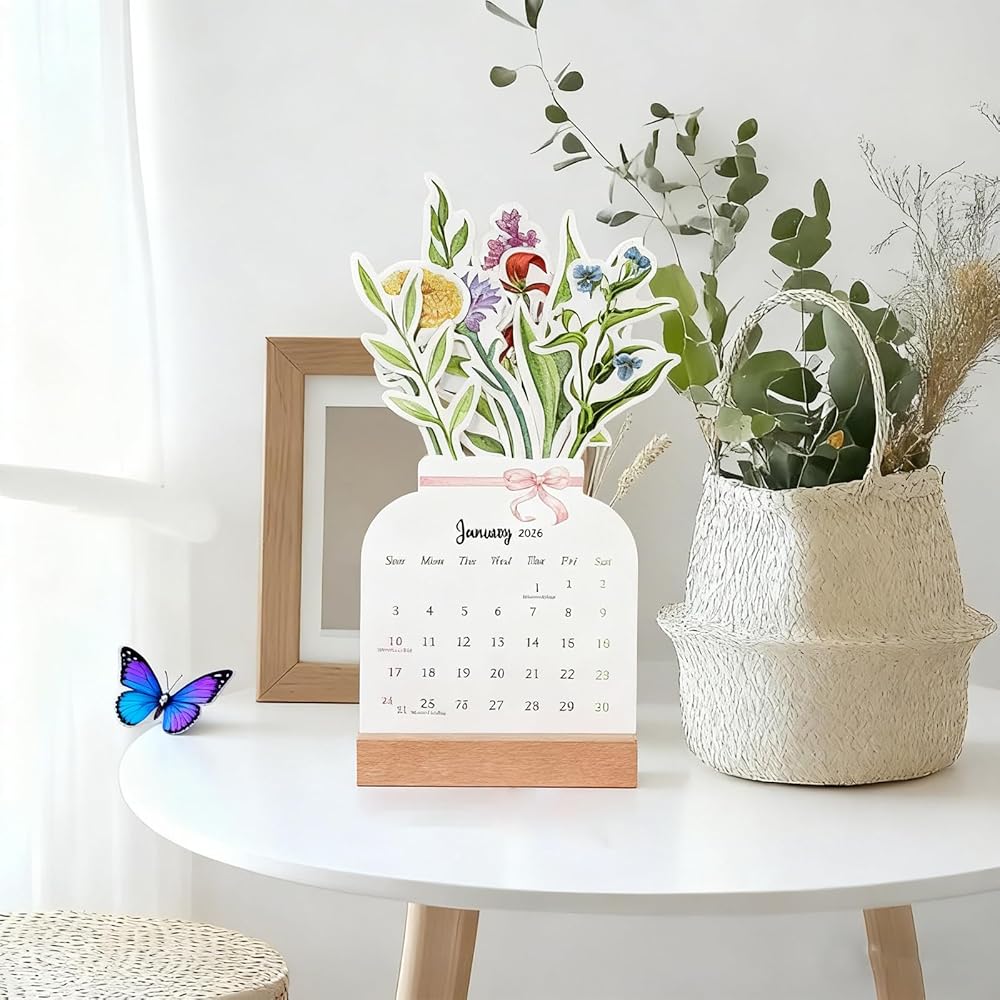 Detachable Design: The Flower Calendar 2026 has a detachable design for easy access and use. The wooden base of the bloomy flowers desk calendar has a groove to convenient fixing the calendar. You can take out each month's calendar separately and mark your itinerary or take notes