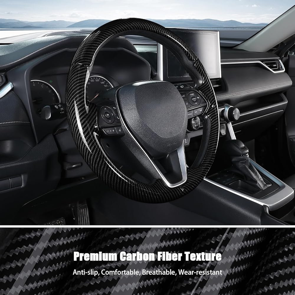 Decoration & Protection: Crafted from premium carbon fiber, the steering wheel cover men/women features a minimalist design that blends seamlessly with Toyota car interiors. It effectively prevent damage from sunlight, fading, wear and tear, and mask scratches.