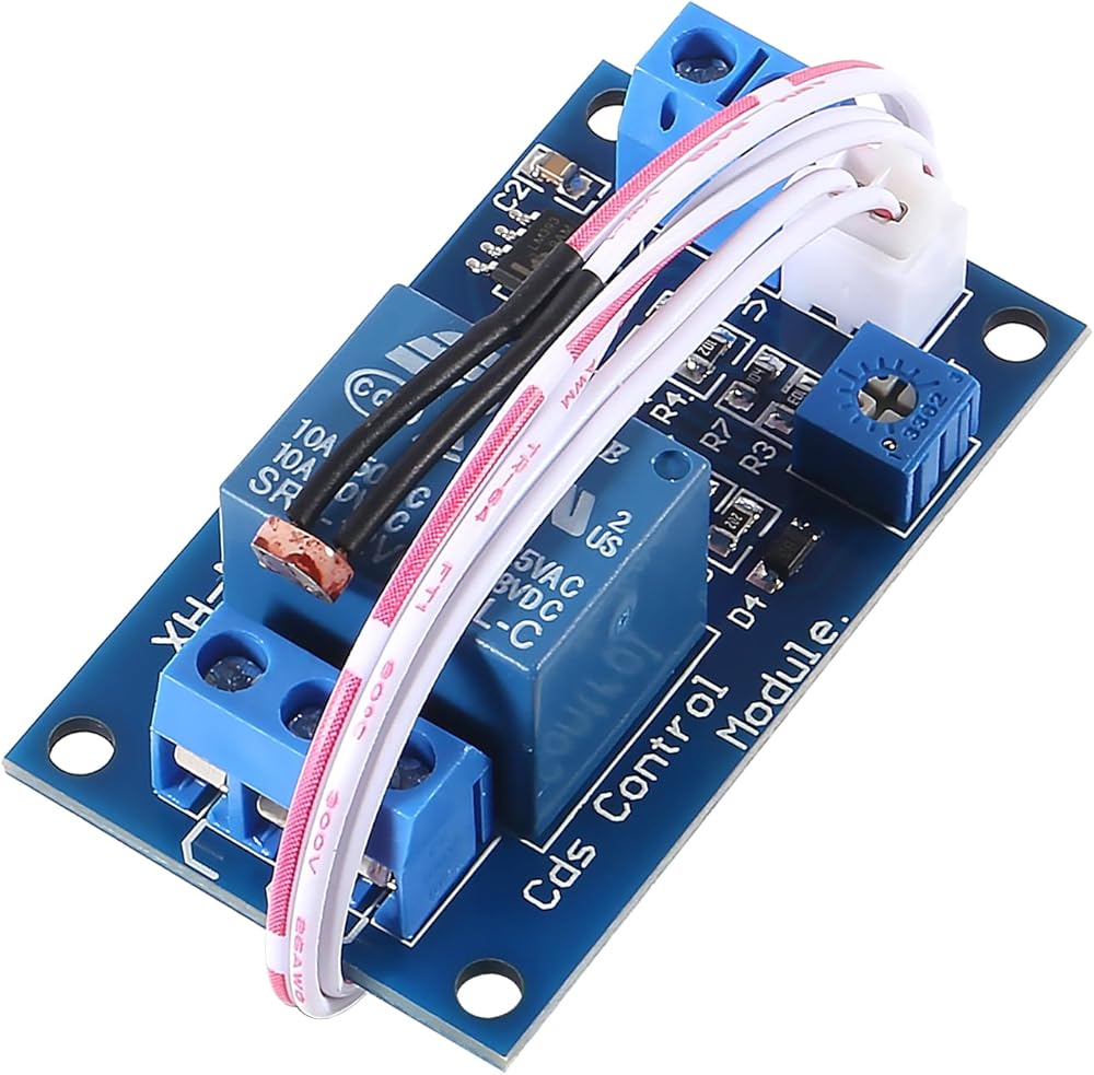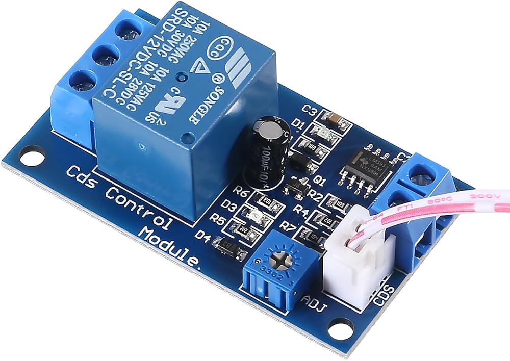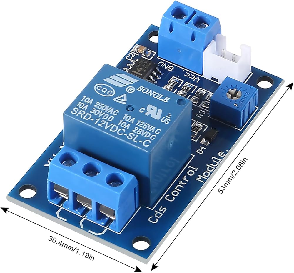Light threshold can be adjusted by potentiometer to set the relay start.