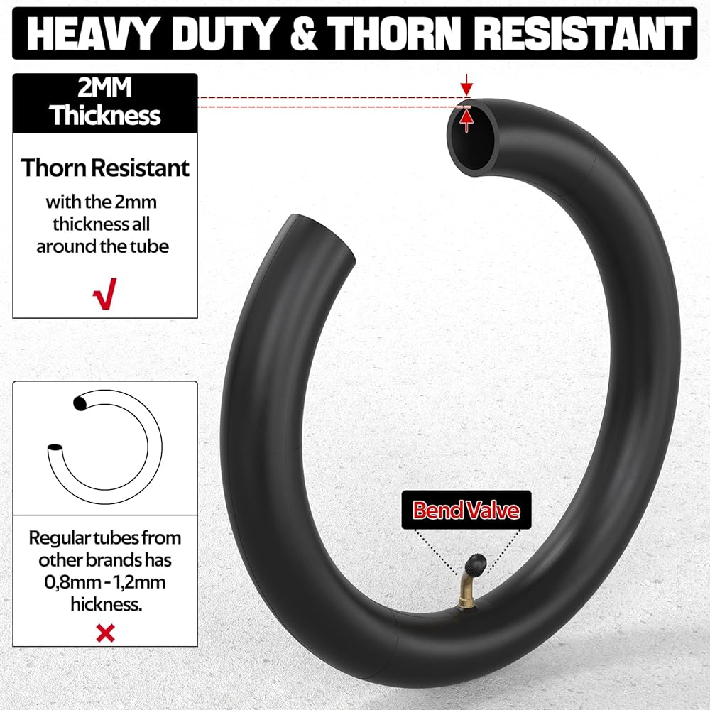 【HIGH QUALITY】This 12.5x2.25 inner tube is made of butyl rubber, which is better in air tightness, elastic damping and aging resistance than natural rubber. Heavy duty inner tube with CR202L-A60 Angled Valve Stem. Size: 12 inch 1/2 X 2 1/4 inch (12.5 X 2.25)