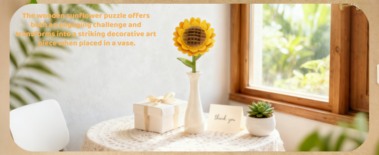 【Wooden Puzzle Sunflower】:This wooden sunflower puzzle embodies the flower's radiant qualities and the courageous pursuit of happiness. Gift this 3D puzzle to your beloved, where every interlocking piece whispers a promise of love that endures forever.