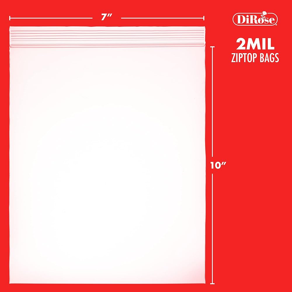 Dirose Reclosable Poly Zip Top Bags - 7" x 10" (100 Count), 2 Mil - Plastic Ziplock Bags – Resealable Plastic Bags with Zipper - Clear Bags for Snacks, Hardware, Arts & Crafts