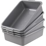 Ramddy 8 L Food Service Commercial Bus Tubs, 4 Packs, Small Rectangle Wash Basin Dishpan, Grey