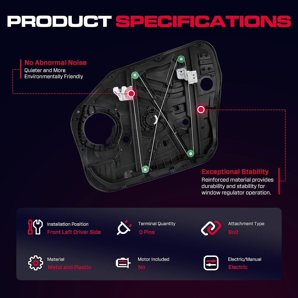 Easy Installation: Precise mounting points and easy installation of the window regulator assembly require no special tools for easy operation and installation