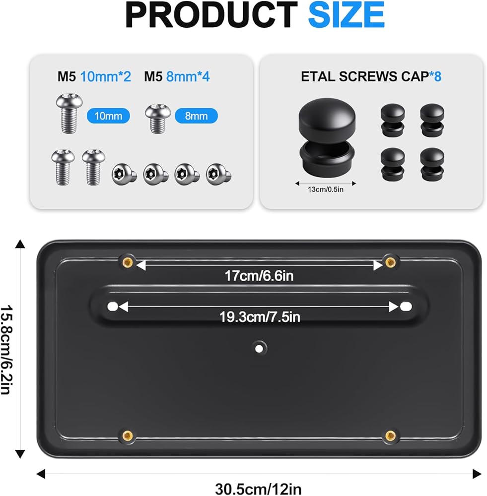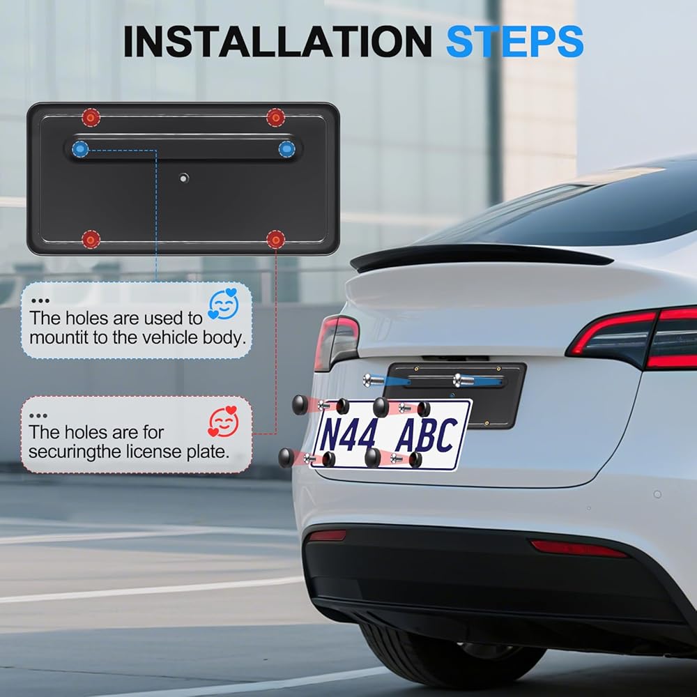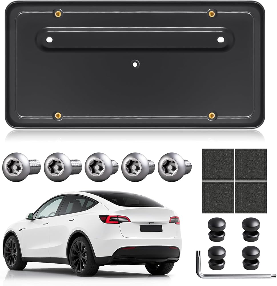 Rear License Plate Holder for Tesla Model Y(2020-2024)& Model 3(2017-2023),Rear License Plate Frames for Tesla Model 3&Y Accessories,Rear Number Plate with Anti Theft Screw Kit-OE:109684400B