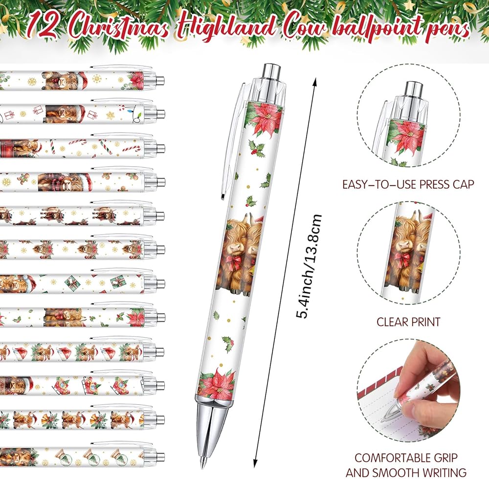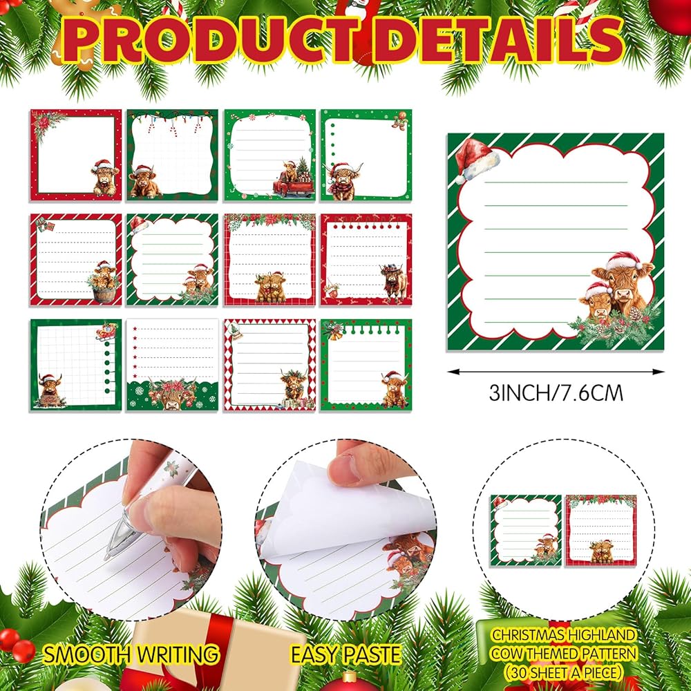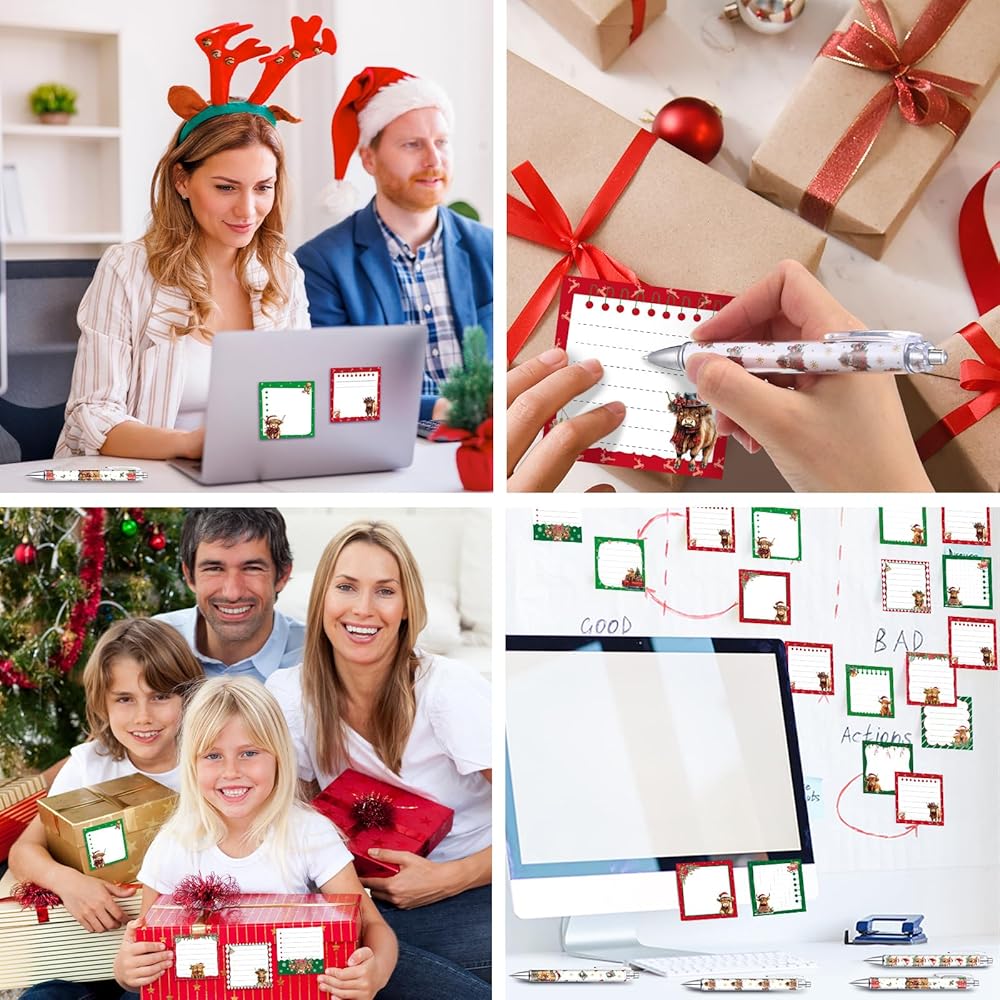 Package includes: 12 Set Christmas Highland Cow Notepad and Pen Set