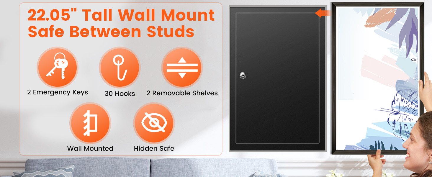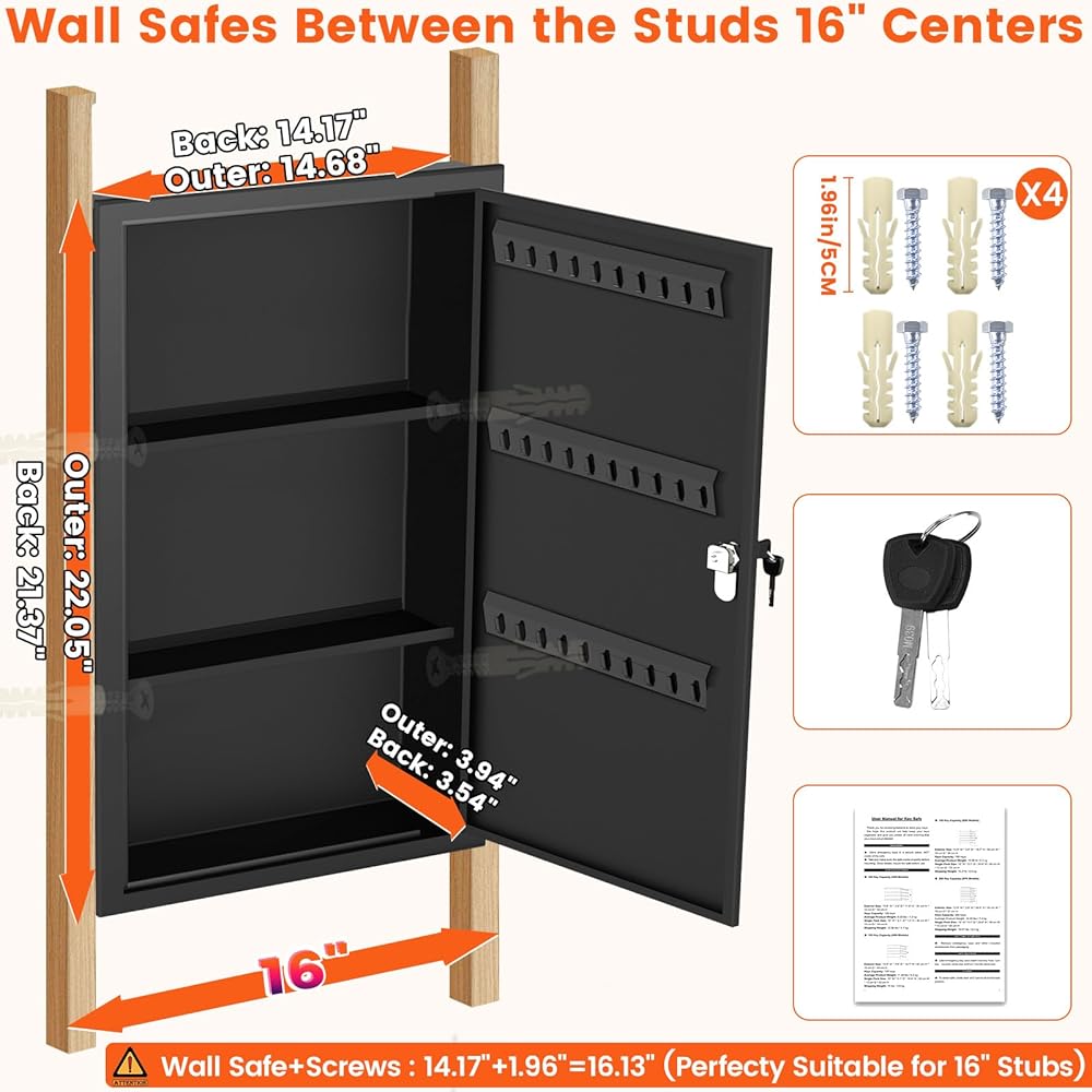 Complete Package Contents: Includes one 22.05" wall safe, two unique keys, four mounting bolts, and a manual. For post-purchase questions, contact us online immediately; we aim to resolve issues within 24 hours