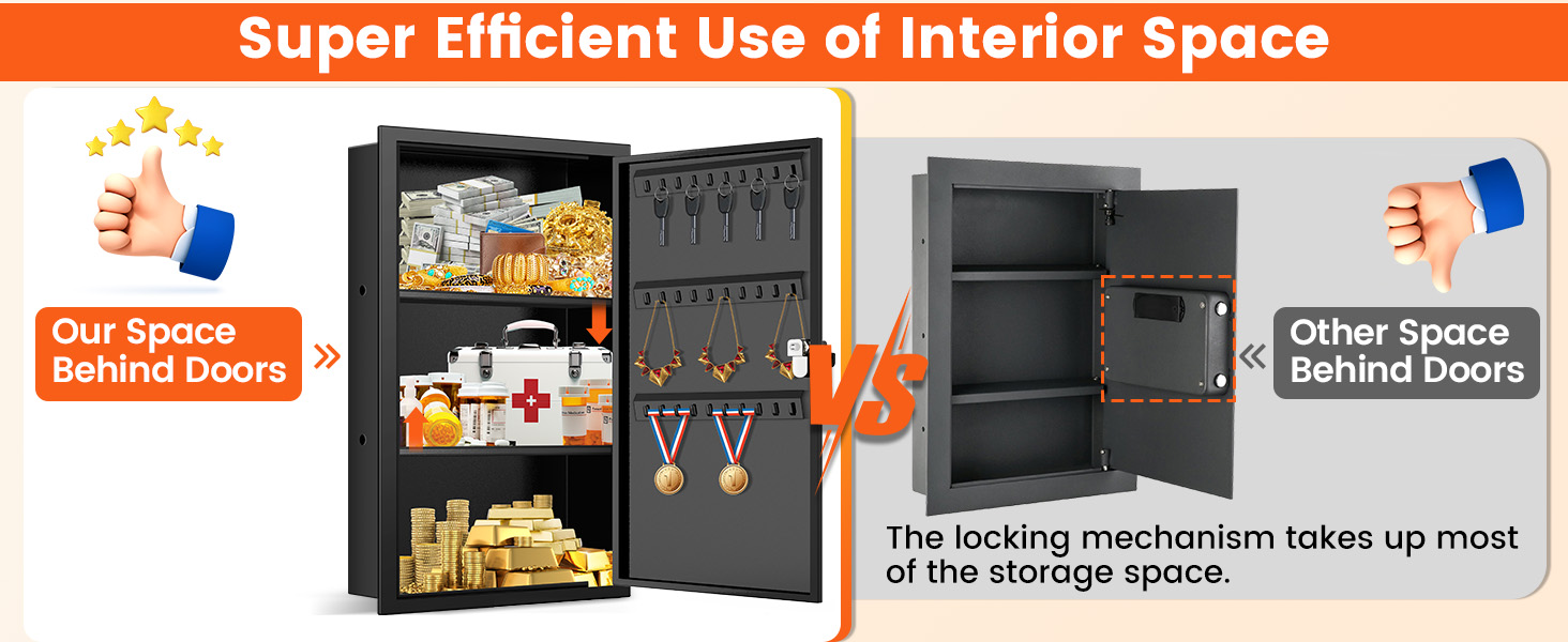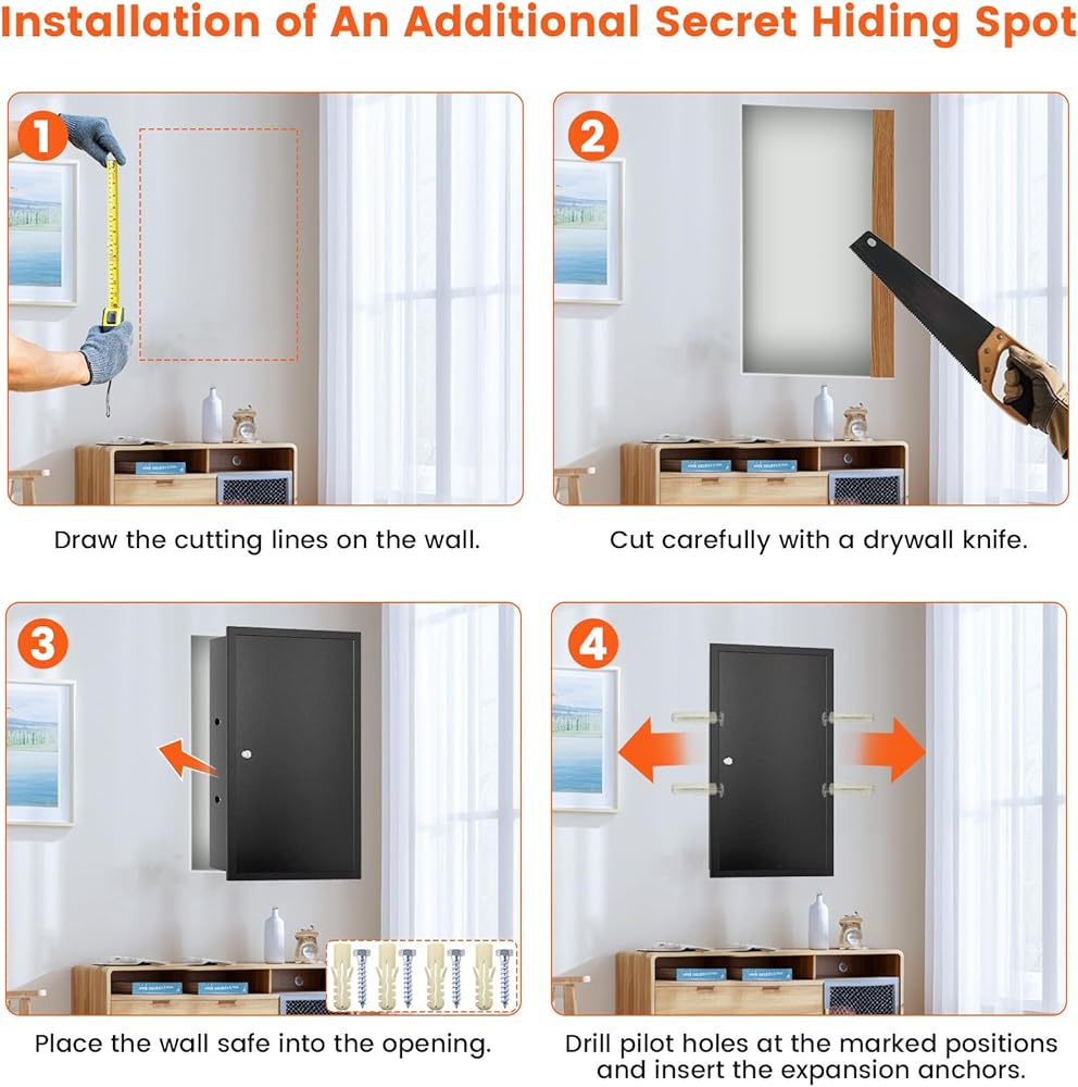 Secure Key Lock with Replacement Option: The locking in-wall safe includes two unique keys for secure access to passports, cash, and medicine. If you lose a key, you can request a replacement