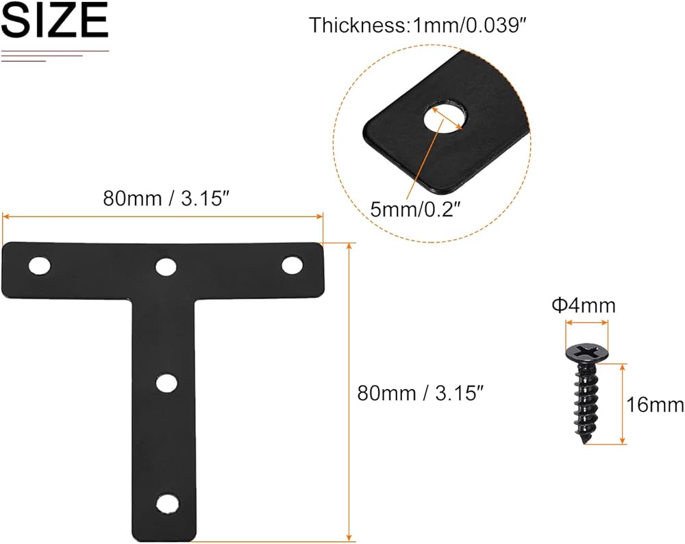 Feature - The mending plate adopts a 5-holes design, which has a large contact area and can bear weight. T shape can set up a frame that maximizes reinforce the stability of the edge of the furniture and the furniture will be enhance and not easily get loose.
