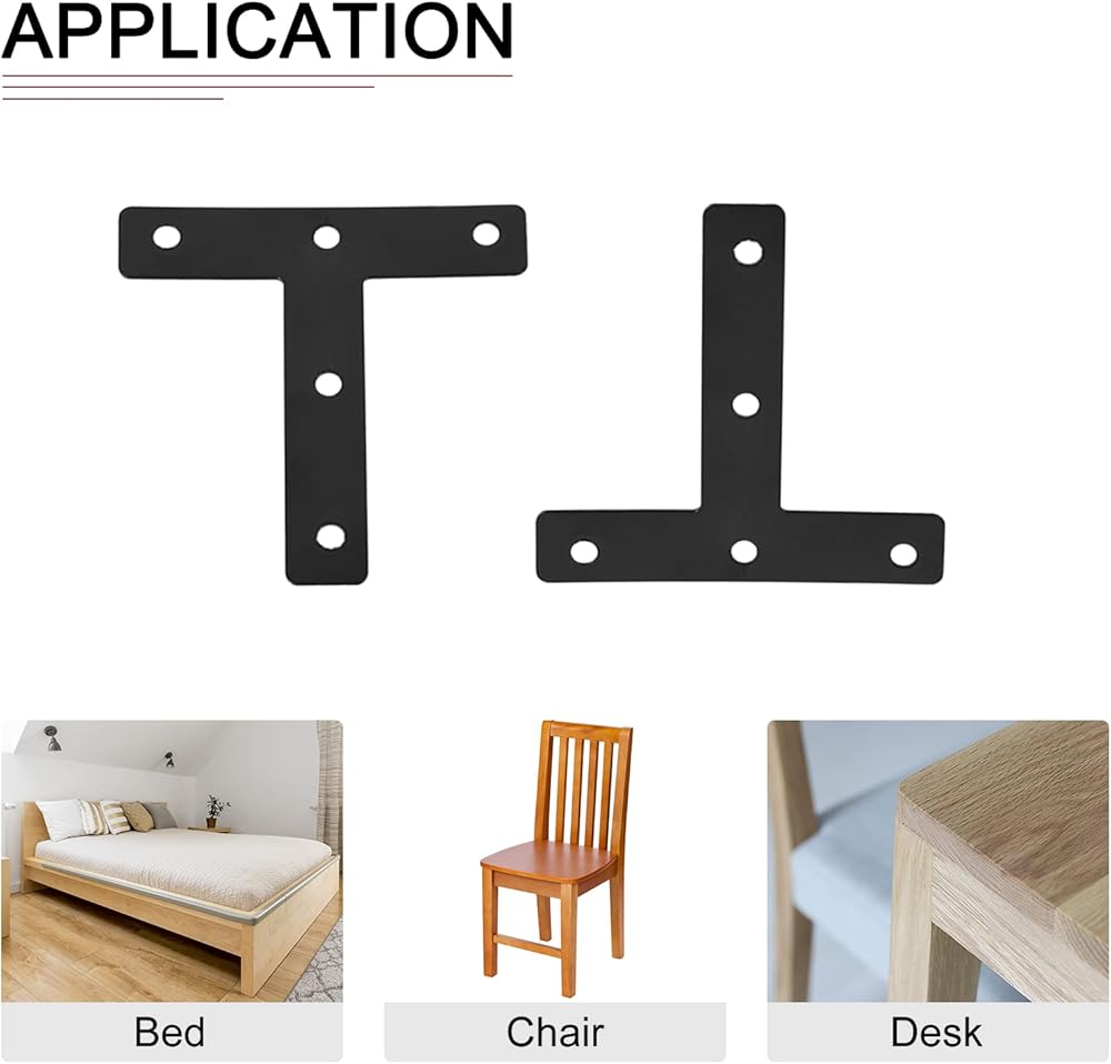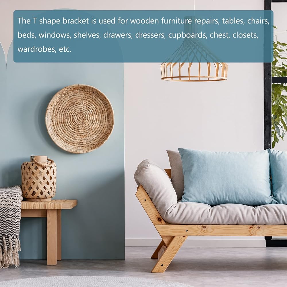 Application - The T shape bracket is used for wooden furniture repairs, tables, chairs, beds, window, shelves, drawers, dressers, cupboards, chest, closets, wardrobes, etc