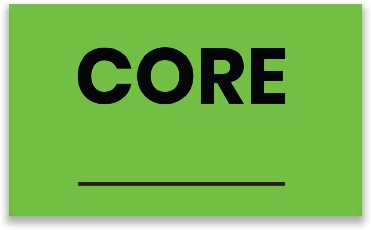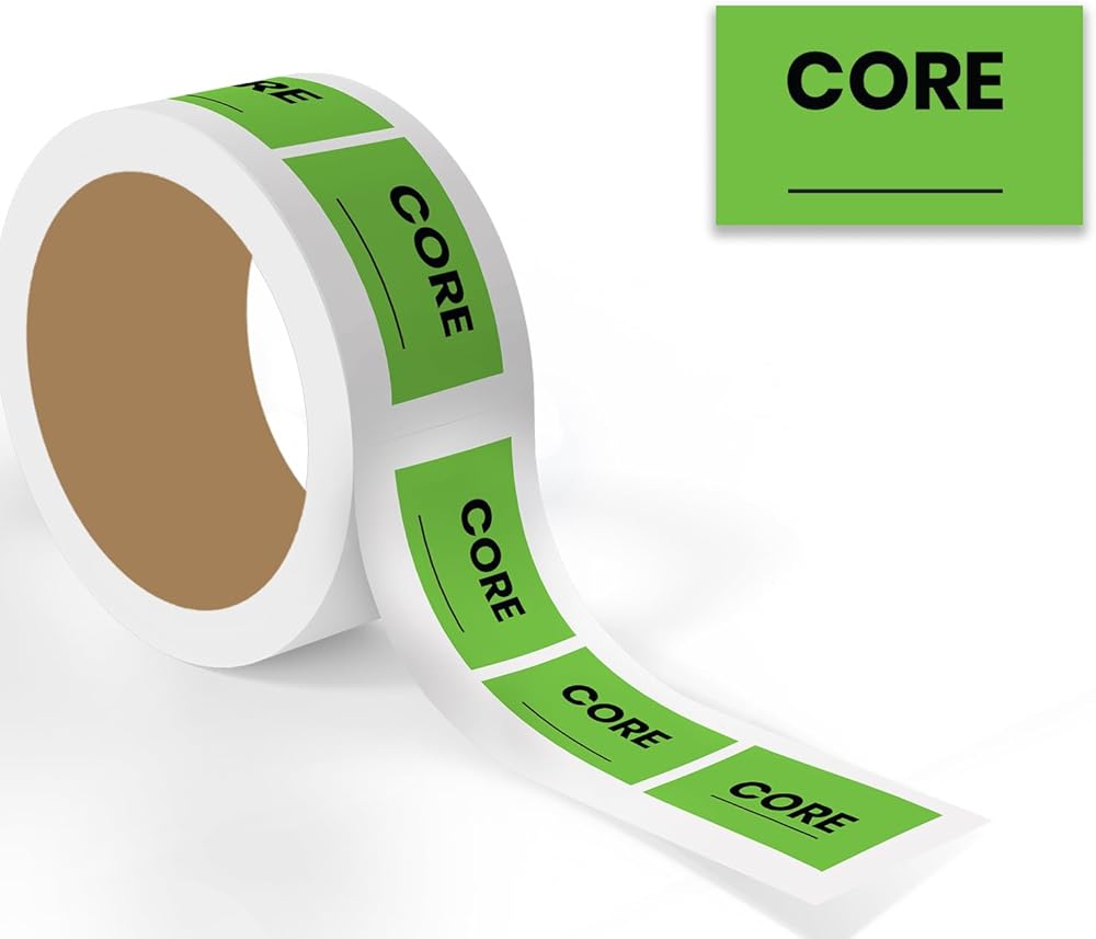 “Core Return” Identification Labels – 3" x 5", 500 Qty/Roll: Bright green adhesive labels with bold black text clearly mark items designated for core return. Measuring 3" x 5" and supplied in rolls of 500, these durable labels improve tracking, reduce errors, and streamline handling in warehouses, automotive facilities, manufacturing plants, and logistics operations.