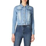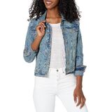 Women's Basic Non-Destructed Medium Wash Slim Fit Denim Jacket With Sand Blasting, Front flap pockets, Button Closure and With Stretch