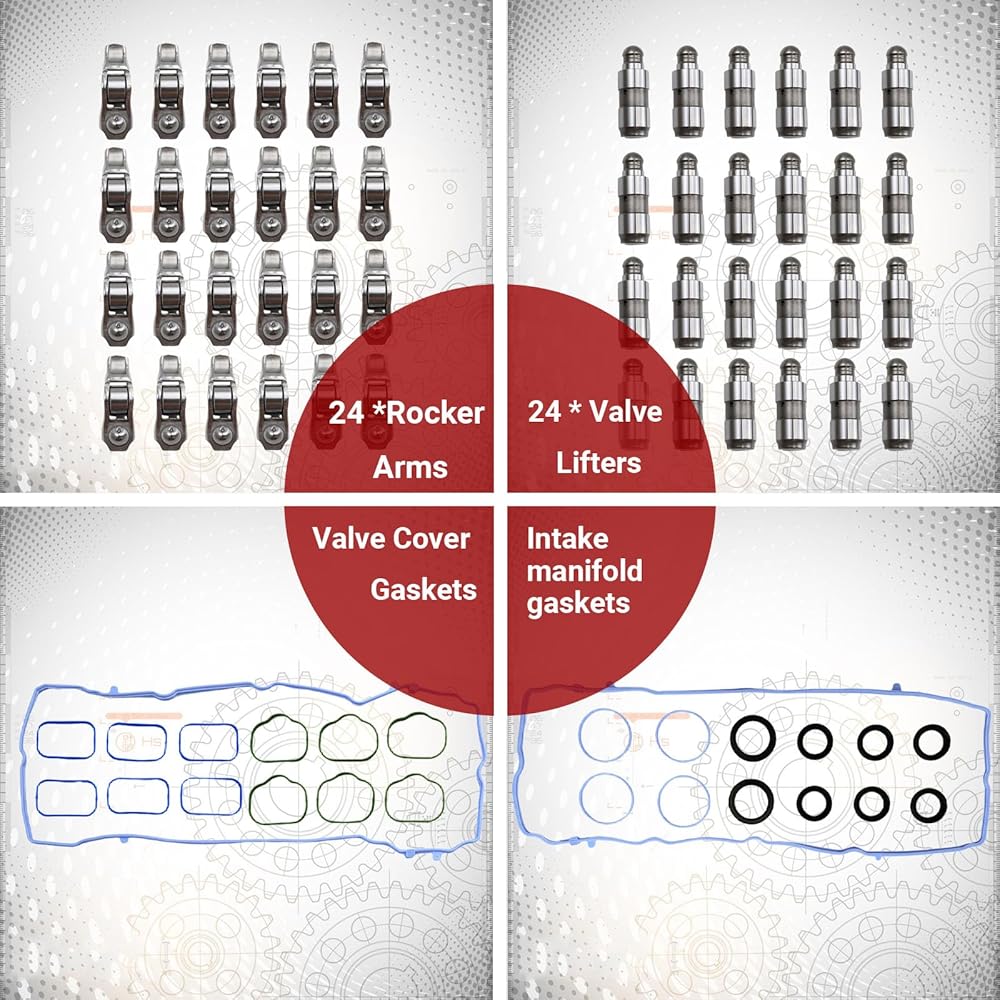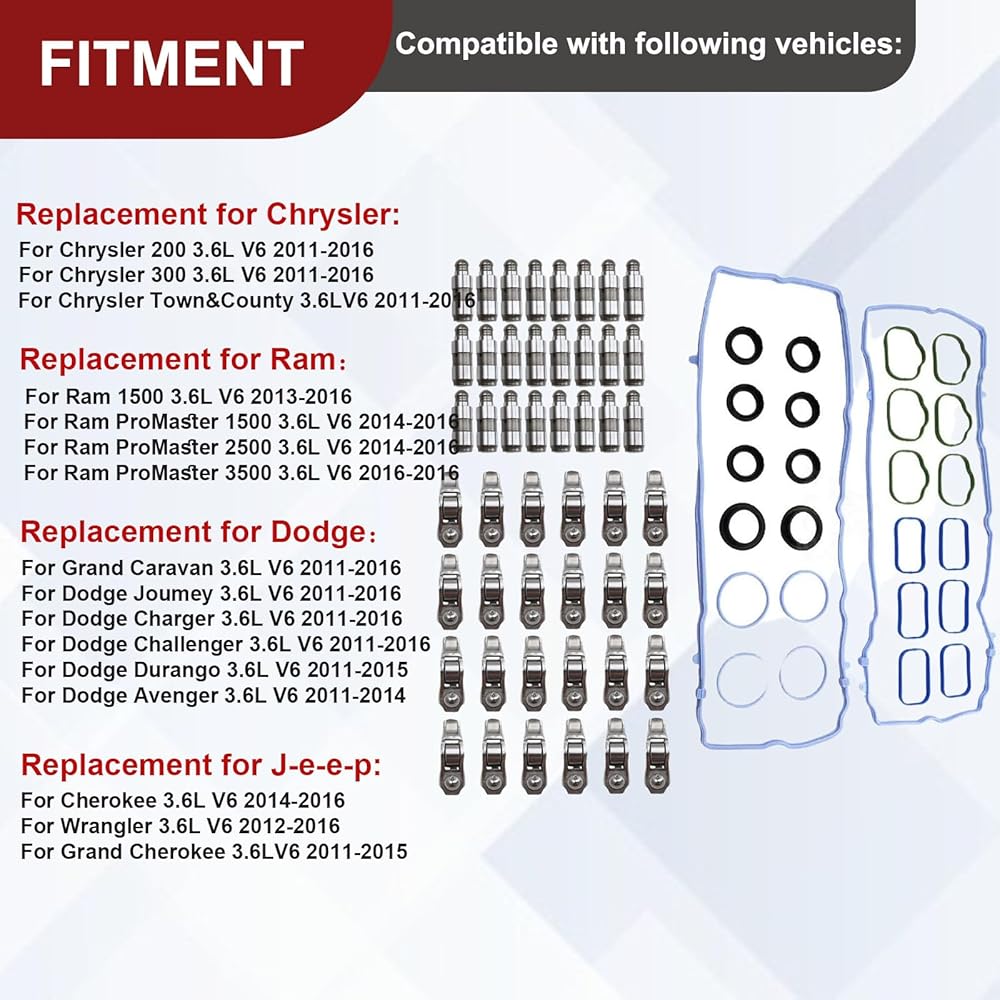 Rocker Arm Lifters Kit with Valve Cover Gasket for Dodge Challenger Charger Journey, for Chrysler 200 300, for Cherokee Wrangler 3.6L 2011-2016 Replace OE 5184296AH 5184332AA 5184596AE