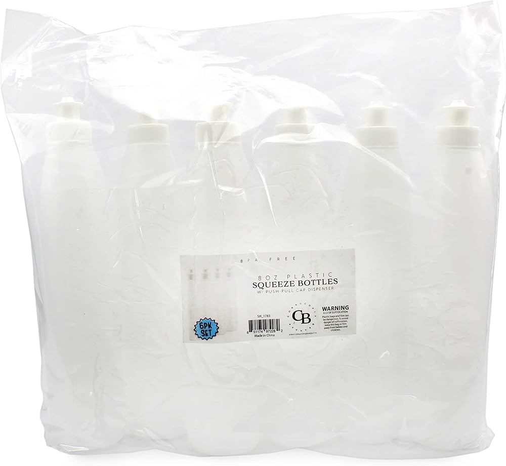 Cornucopia 8-Ounce Squeeze Bottles for Dish Soap and Sauces (6-Pack), BPA-Free HDPE Plastic