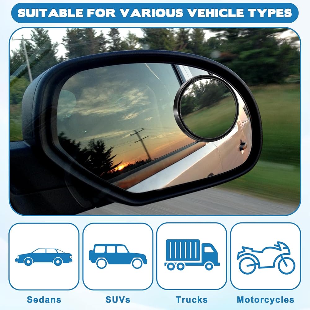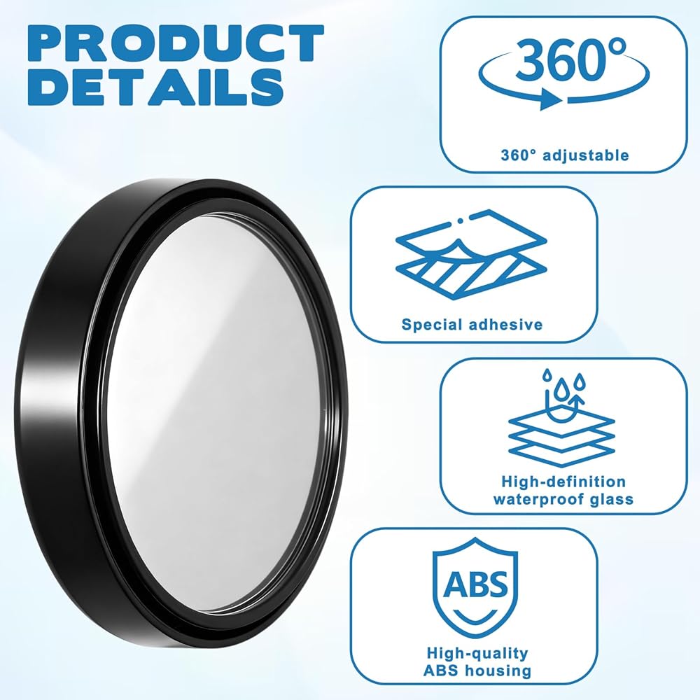 Package Included: You will receive 2 round blind spot mirrors, each 5.8cm/2.28in in length. These compact and portable mirrors reduce blind spots, improve road visibility, and help you achieve perfect visibility.