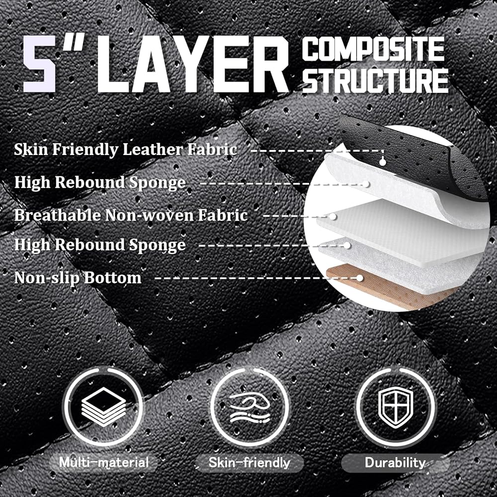 [Premium Workmanship]: The top layer of our mercedes sprinter 2500 seat cover is a new upgraded leather, with high elasticity sponge underneath, skin-friendly and breathable white cotton inside, closing with a breathable and non-slip backing fabric, which is strongly built with five layers of rebound composite material, cool and comfortable at the same time