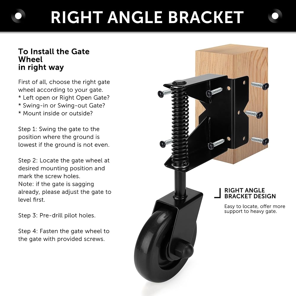 【Choose the Correct Direction Gate Wheel】YONSIN offers right-angle mounting gate wheel for Left-Open gate and Right-Open gate separately to avoid the complicated trouble to change the bracket mounting direction. Just confirm which direction you want for your gate and choose the correct asin.