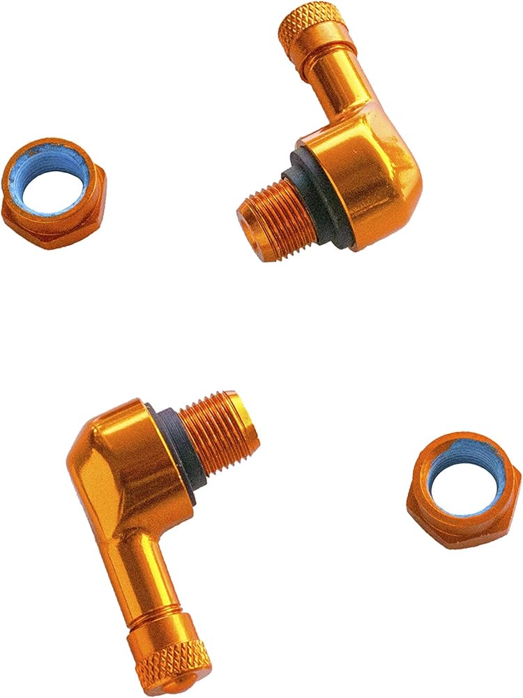 NEX Performance Forged Alloy Angled Valve Stem with Pre-Applied Threadlocker Nut, 0.453in (11.3mm) Size, Orange