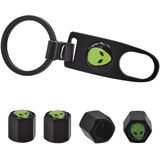 Triplinger Alien Black Car Tire Valve Stem Caps & Keychain - 8V1 Copper Alloy Car Valve Stem Air Caps Cover - Universal Accessories For Car/Truck/SUVs/Motorcycle/Bicycle Wheels - Waterproof/Dustproof - 4PCS