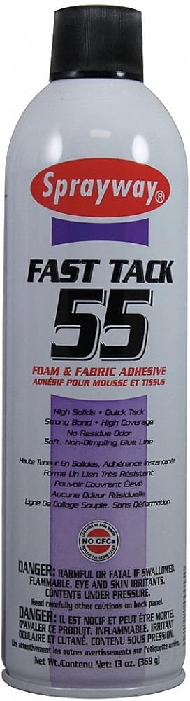 Fast Tack 55 is fortified with high solids for stronger, longer bonds. The snorkel tip provides uniform, soft glue lines that will not dimple. The quick tack and low soak-in feature leaves more adhesive on the surface of the substrate which results in stronger bonds.