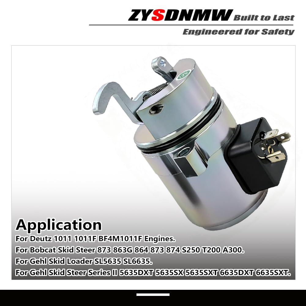 04272733 12VDC Fuel Shut Off Solenoid Fit for Deutz 1011 1011F BF4M1011 Engine Bobcat 863 864 873 874 S250 T200 A300 Gehl SL5635 SL6635 5635DXT 5635SX 5635SXT 6635DXT 6635SXT Replace 6886715 04271996