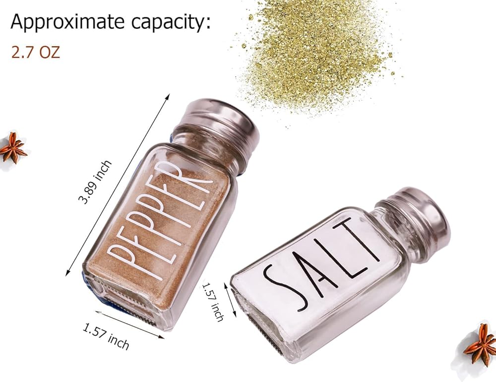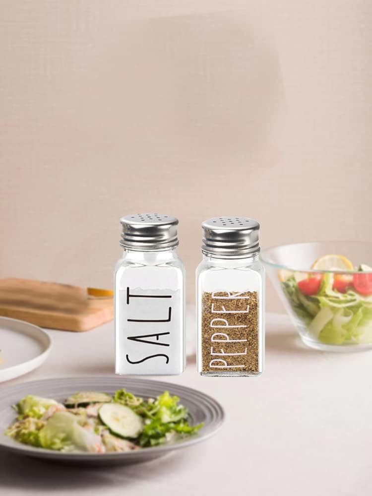 Durable And High Quality Material: VICUKIE farmhouse salt and pepper shakers set is made of high quality and thick glass.The lid is made of corrosion resistance stainless steel.