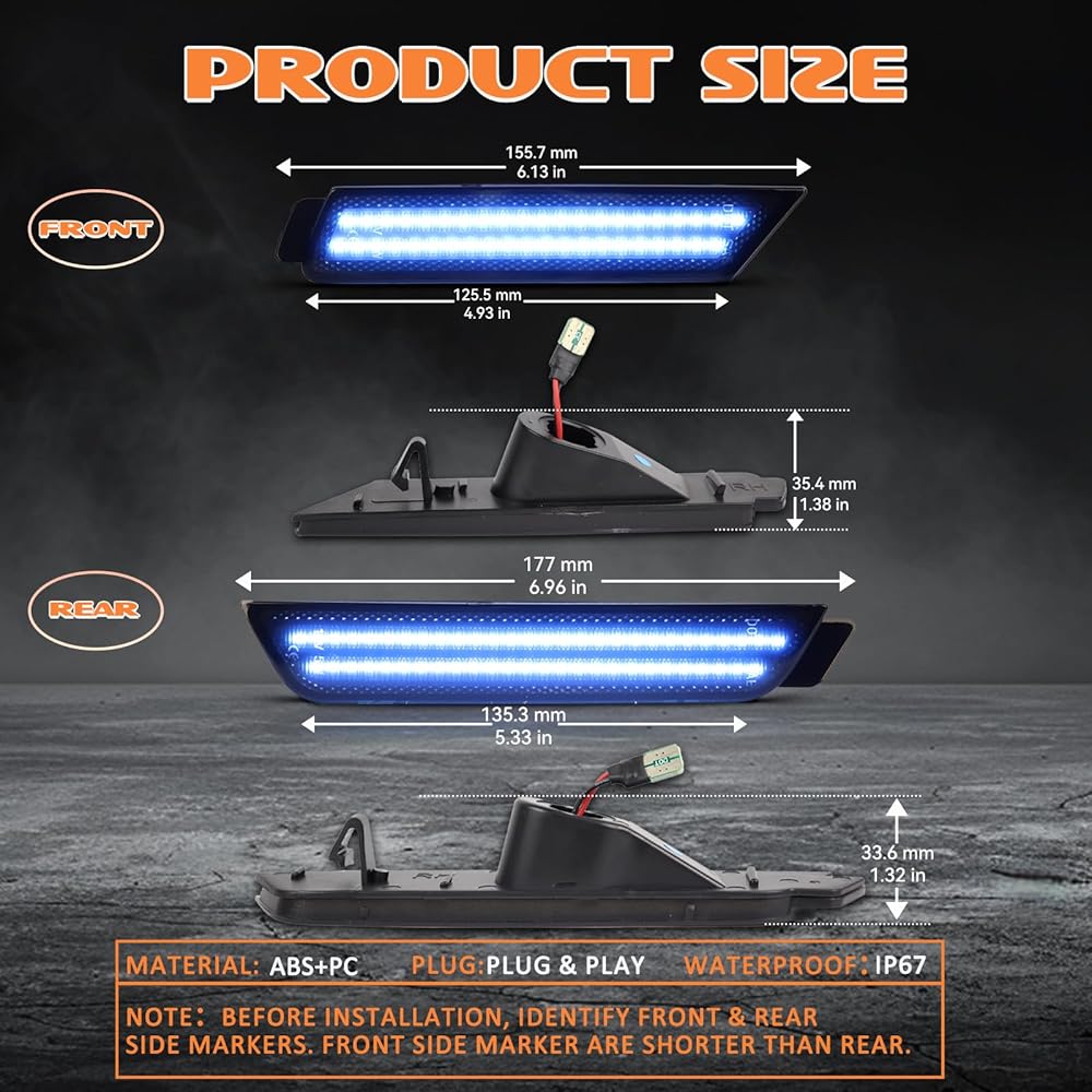 What's in the Box?4PCS dynamic Smoked lens purple side marker light for 2010-2015 Chevy Camaro. Any questions please feel free to contact us.