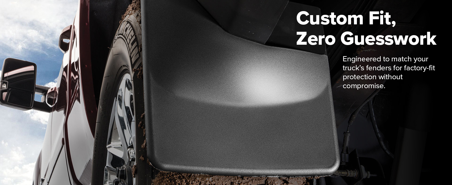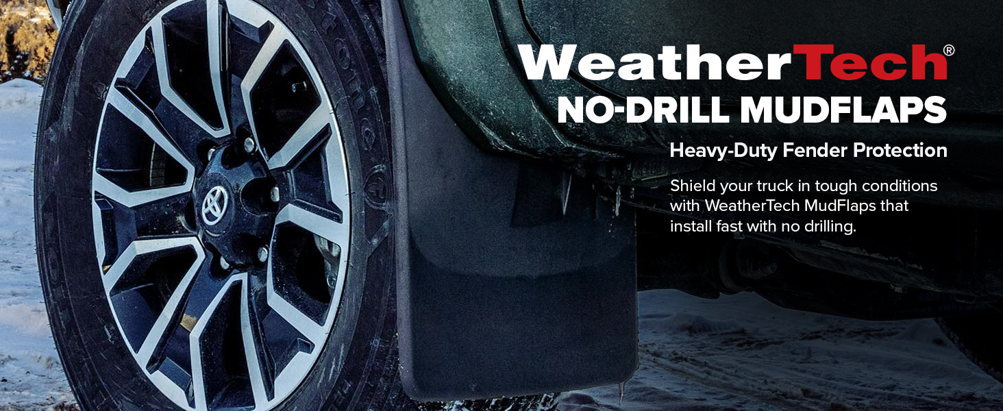 Laser measured for a perfect fit the WeatherTech Mud Flap literally "mounts-in-minutes" (in most applications) without the need for wheel or tire removal and most importantly without the need for drilling into your vehicle's fragile painted metal surface.