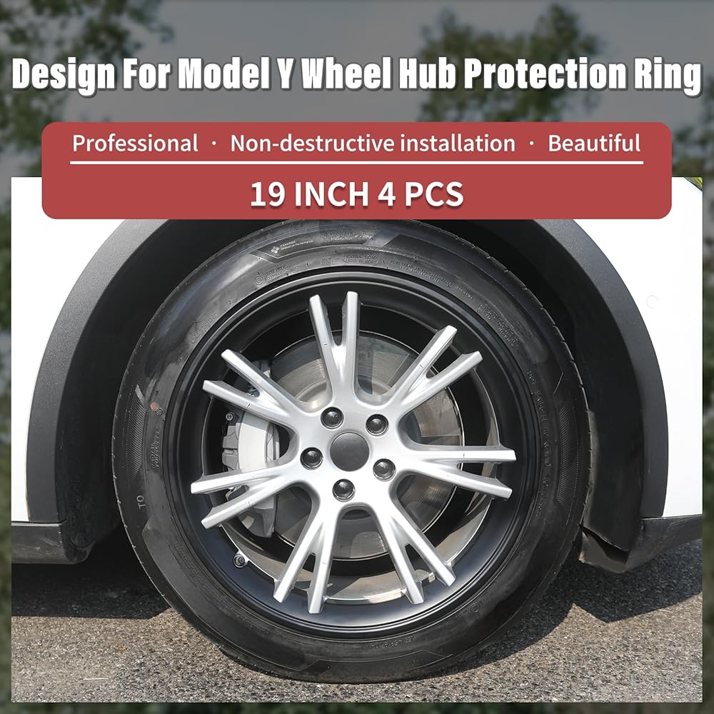 Model Y Wheel Cover for Tesla 19 Inch Wheel Rim Protector Hubcap Wheel Scratch Prevention for 19inch Wheel 4PCS Model Y 2020-2024 Rim Protector ABS Protection Easy Installation (Black, 19 inch)