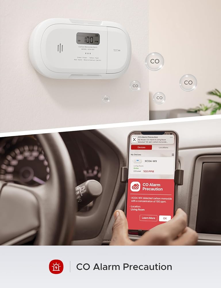 CO Alarm Precaution: Using the app, you will quickly receive a warning that alerts you to any possible risk once the CO level reaches above 100 ppm without waiting for the response time, allowing you to act immediately