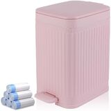 Includes 6 Extra Trash Bags, Stylish Anywhere – This compact trash can with lid comes with 6 extra rolls of trash bags. Its modern retro design fits bathrooms, kitchens, offices, dorms, or campers with ease