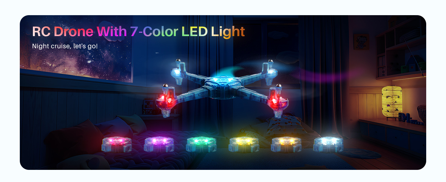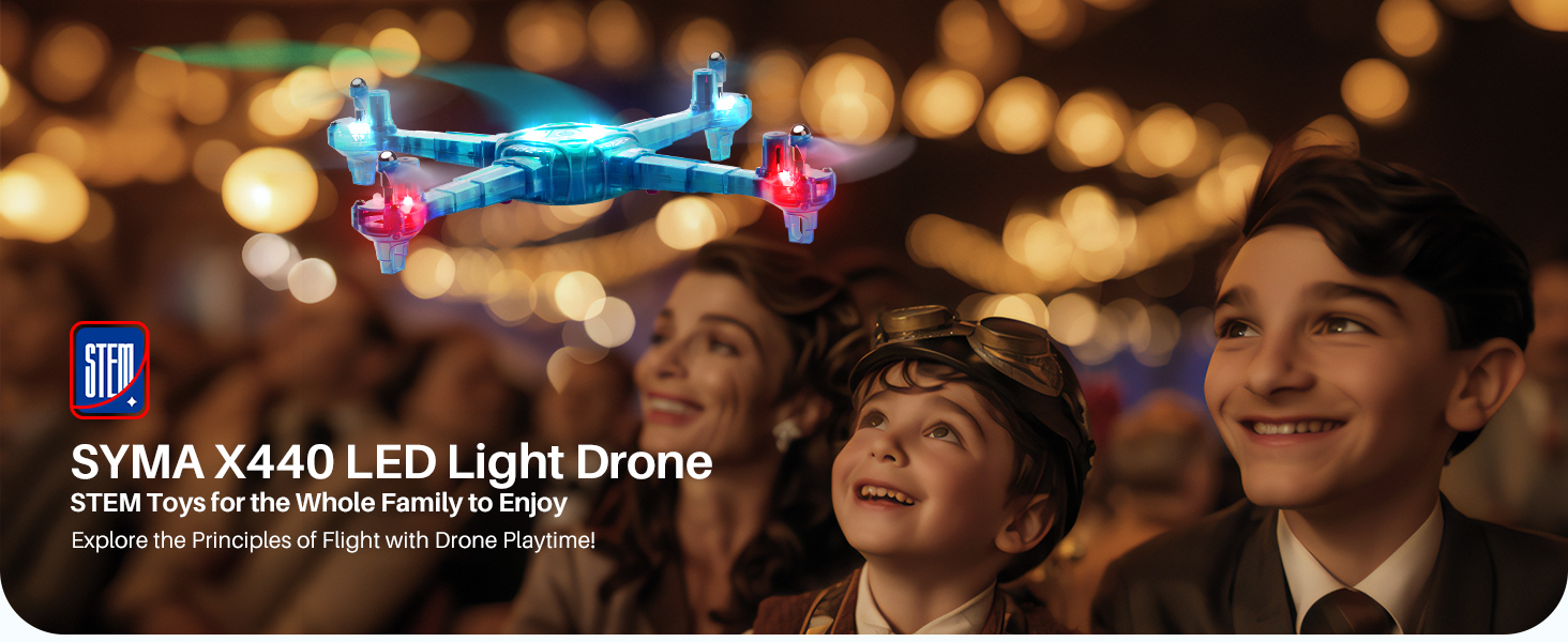 Sparkling Night Flights: The SYMA drone's transparent frame and adjustable lights create a stunning visual experience, turning each night flight into a family spectacle
