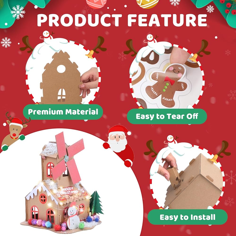 Ideal for Family Activities: The gingerbread house craft kit ideal for families, classrooms, and craft parties, this gingerbread house kit encourages creativity and teamwork while creating lasting holiday memories; It's a meaningful way to spend quality time together during the festive season