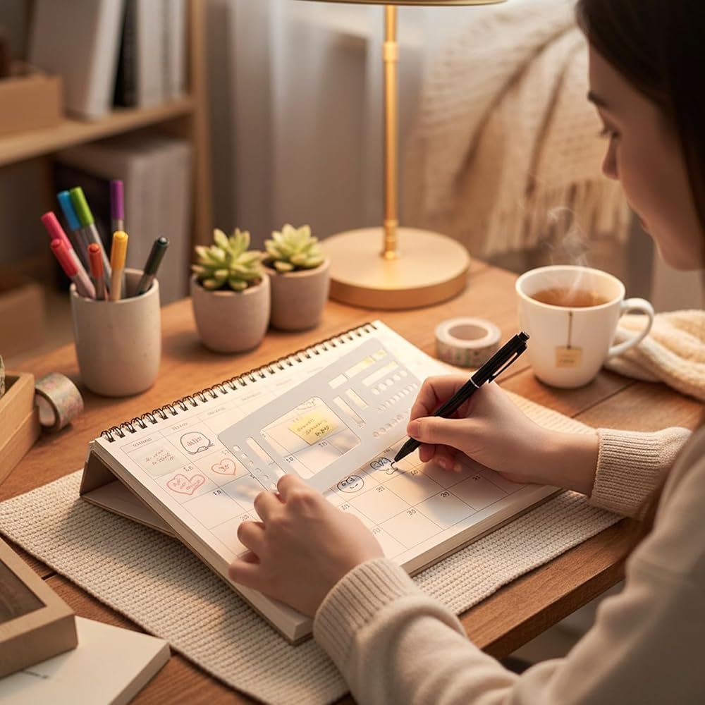 【Universal Media Compatibility】Works seamlessly with fineliners, markers, and watercolors. This planner stencils templates set ensures clean, smudge-free designs, making it essential calendar planner stencils for all artists