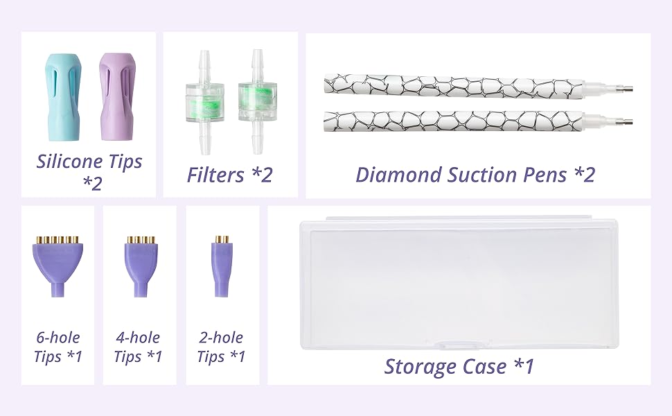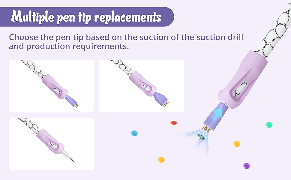 【Compatibility with Various Devices】This ergonomic diamond painting pen replacement kit, featuring multi-hole tips, is compatible with both traditional wax-picking methods and vacuum applicators with tubing.Please note: The 2-hole tips are compatible with most devices, whereas the 4-hole and 6-hole tips require a vacuum diamond pen with strong suction power to pick up 4 or 6 diamonds simultaneously. Therefore, they must be used with a vacuum drill machine that features multi-level suction adjustment and sufficient suction strength.