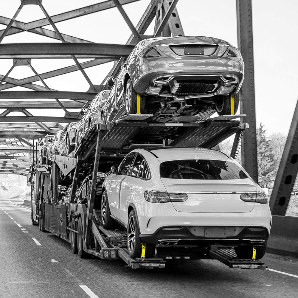 INDUSTRIAL STRENGTH COMPONENTS - Each strap includes three double-J wire hooks, a heavy duty ratchet buckle, and three rubber tire cleats. The double-J wire hooks fit into standard auto hauler ''pooch holes'' or ''star holes'', the ratchet tightens the strap, and the strap surrounds the tire and tensions away from the vehicle.