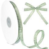 50 Yards Green Plaid Ribbon, 3/8 Inch Green and White Gingham Ribbon Fabric Woven Edge Plaid Ribbons Checkered Ribbons for Gift Wrapping Party Bouquet Decoration Art Craft Sewing Hair Bow Invitation