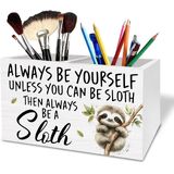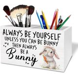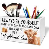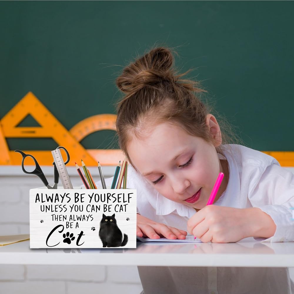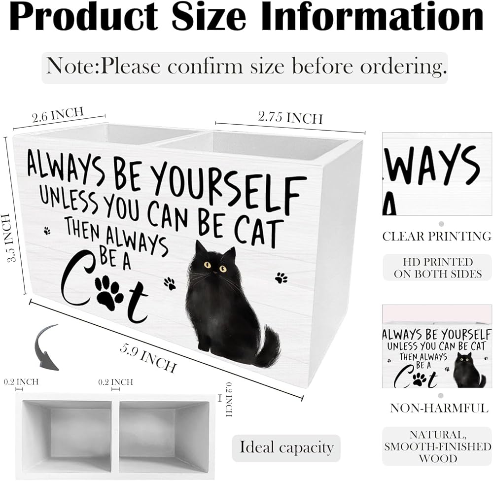 Inspirational Black Cat Pen Holder for Desk, Always Be Yourself Unless You Can Be Cat Wooden Box Sign Desk Decor for Home Office Decoration, Cats Lover Gifts Pencil Organizer