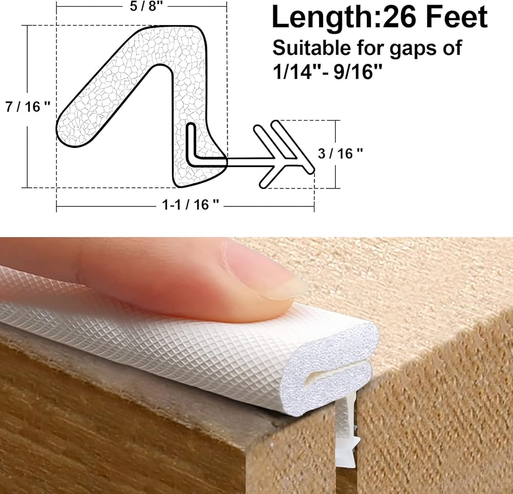 【Package Include】1 Roll * 26 feet/312 inches "Q" foam kerf weather stripping door seal. Suitable for doors up to 72" * 80"/48"*108". For conventional doors such as 30" x 80", 36" x 80", etc. Fit for the groove in the top and side of the door and can be used for door gaps from about 1/14" to 9/16" (8mm to 12mm). Please measure the gap before purchase.