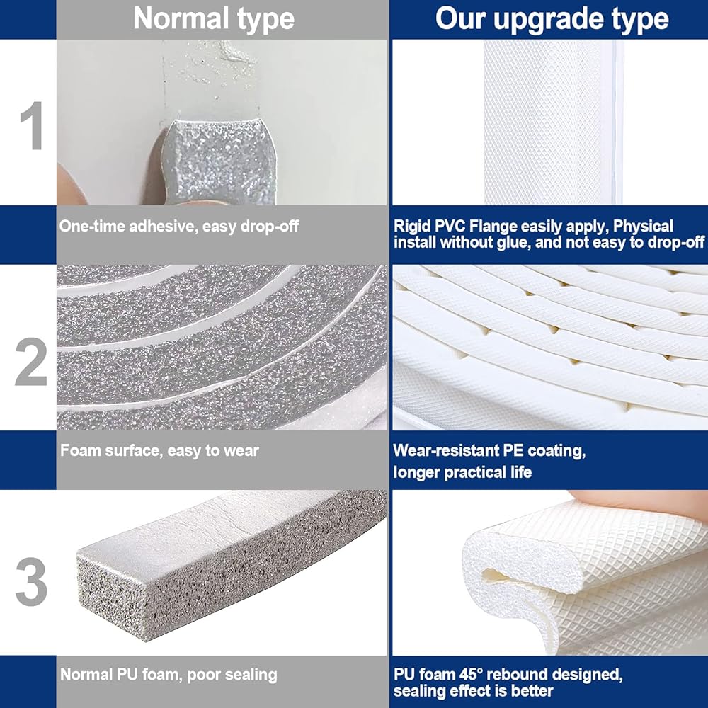 【New Improved】 Compared with a full-foam door seal strip, this weather stripping adopts PVC flange mounting groove and PE outer surface + inner PU foam. High-quality design, in addition to soundproof, dustproof, waterproof, and heat preservation, also extends the service life. It is more convenient to disassemble and assemble, and there is no need to worry about adhesion problems.
