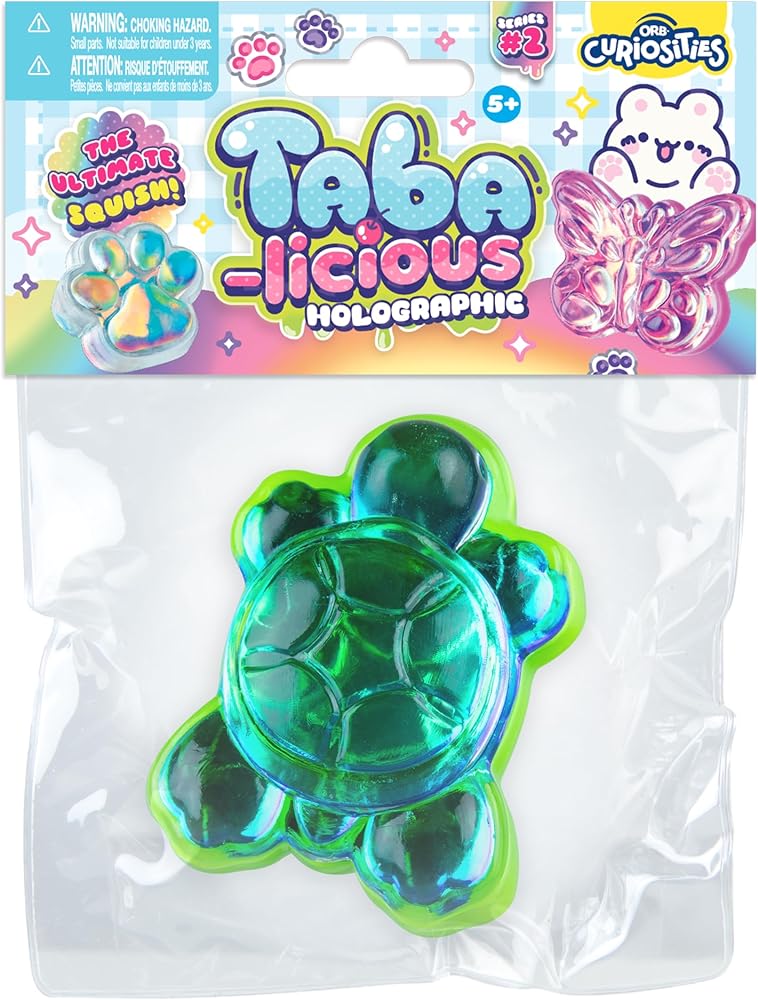 • ORB's Taba-licious Holographic TABA Turtle squishies are the ultimate toys for stress relief - ready for a squeeze whenever you need! With their squishy, stretchy, squeezable features Taba-licious Holographic TABA Squishies are the perfect option to help relieve stress, anxiety, and even boredom. Squishy and stretchy toys like this can even be helpful for those with sensitivities to sensory and visual stimulation.