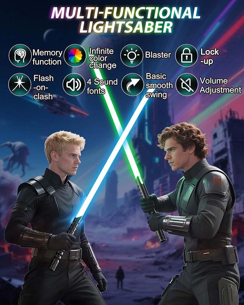 Dueling lightsabers for adults - The RGB Light FX Sabers is made of a Heavy duty metal hilt and a sturdy PC blade. Matte finish, comfortable to handle, blade made of high strength acrylic, hard and durability, stood up to more abuse. Whether you wield it in epic battles or display it as a prized collector's item, this adult lightsaber is trustworthy
