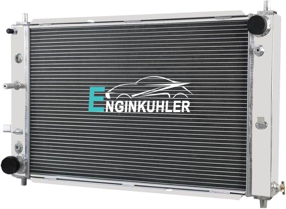 ENGINKUHLER Aluminum Radiator is produced and designed to provide maximum cooling efficiency to prevent engine cooling failure. It is made of full aluminum light-weight, and high-heat transferring aluminum features a tube and fin design that, dramatically increases surface area that enables the heat to dissipate more efficiently. It has an increased durability over the factory plastic end tank radiator, and much inmprovwed engine cooling. Most importantly, it has a much higher capacity for coolant than stock ones, which means that your cooling system will be more efficient and will be more resistant to temperature surges in racing applications.