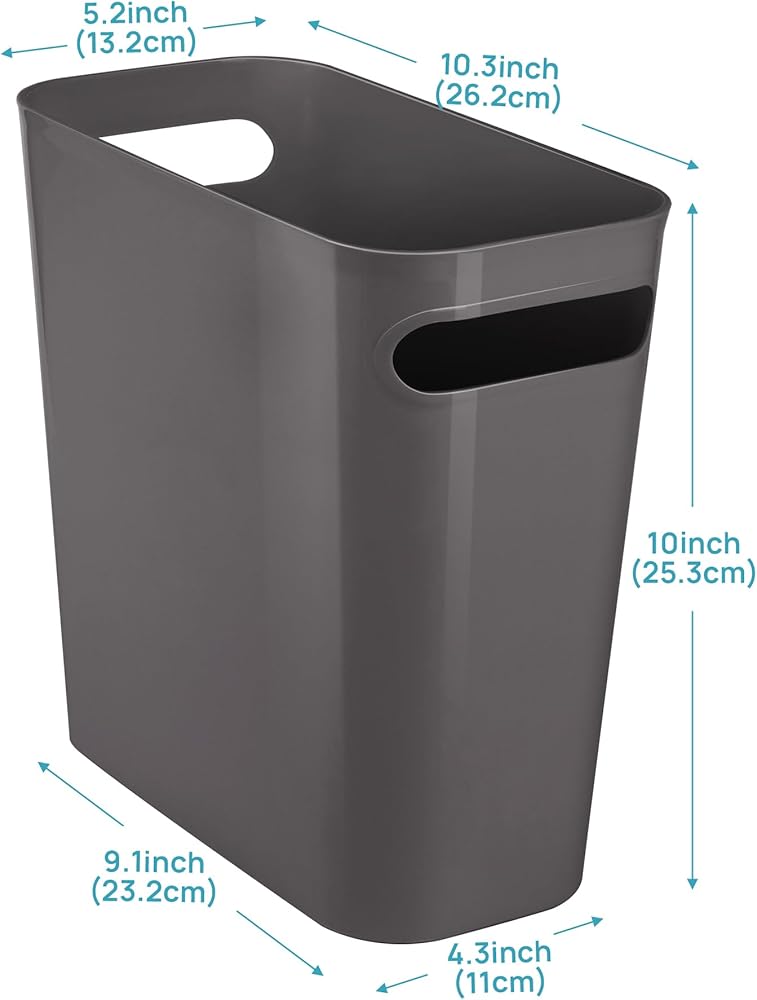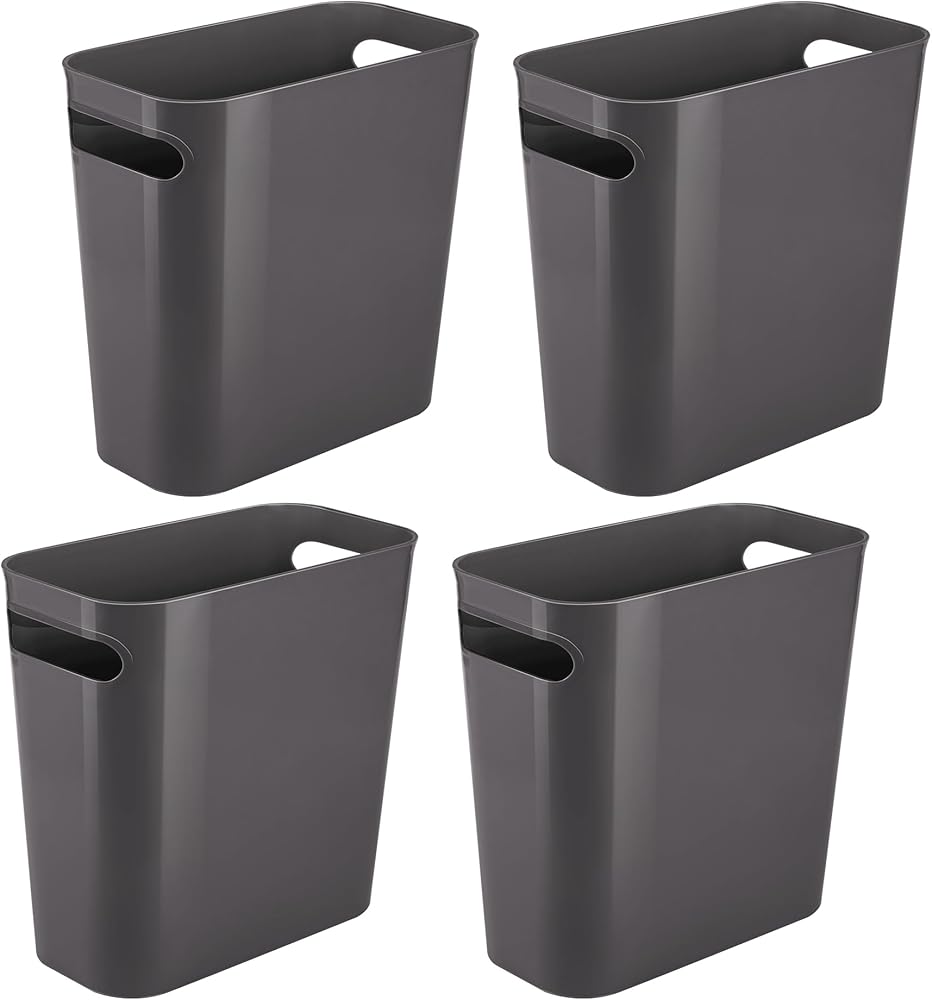 Vtopmart 4 Pack Plastic Small Trash Can, 1.5 Gallon/5.7 L Office Charcoal Bin with Built-in Handle, Slim Waste Basket for Bathroom, Bedroom, Home Office, Living Room, Kitchen