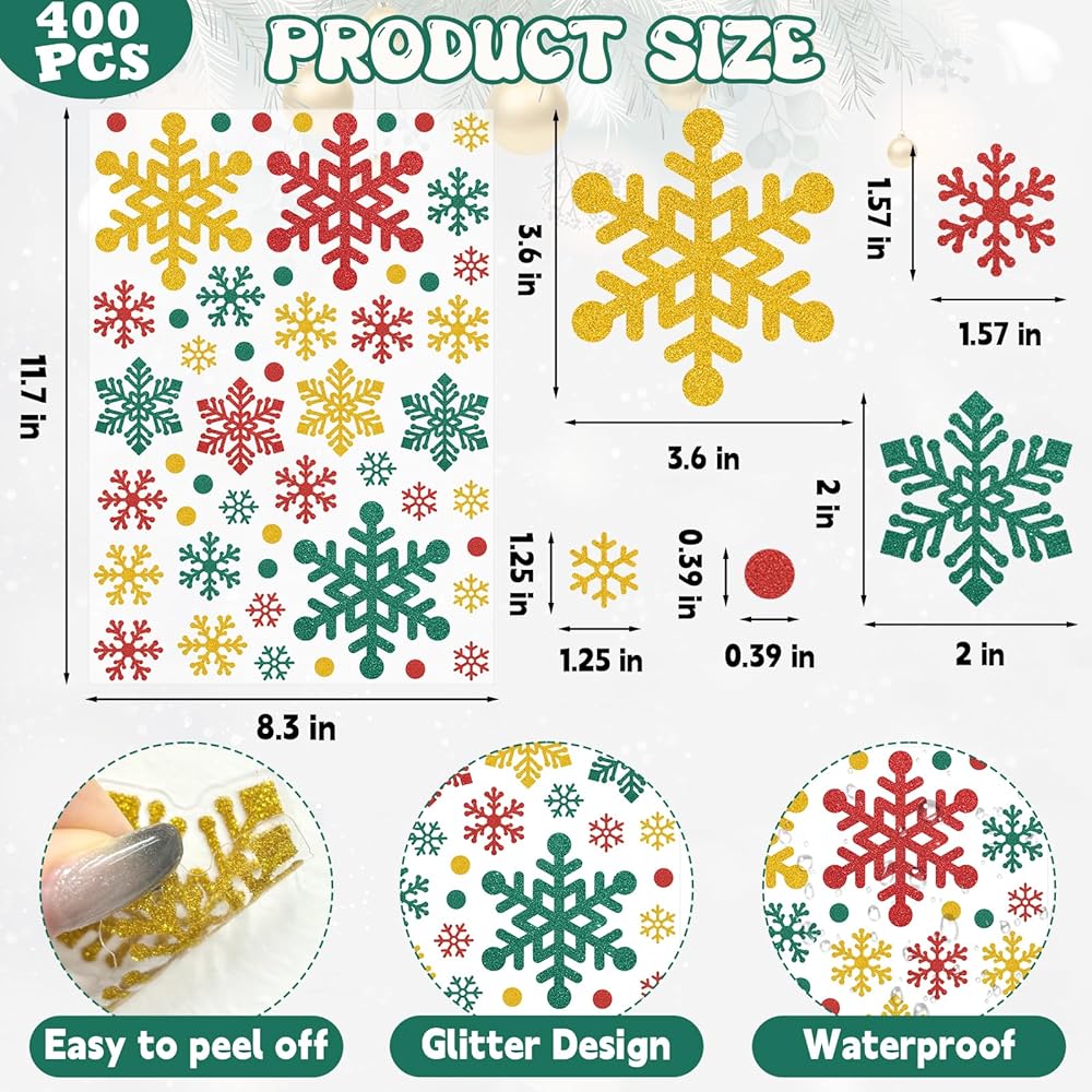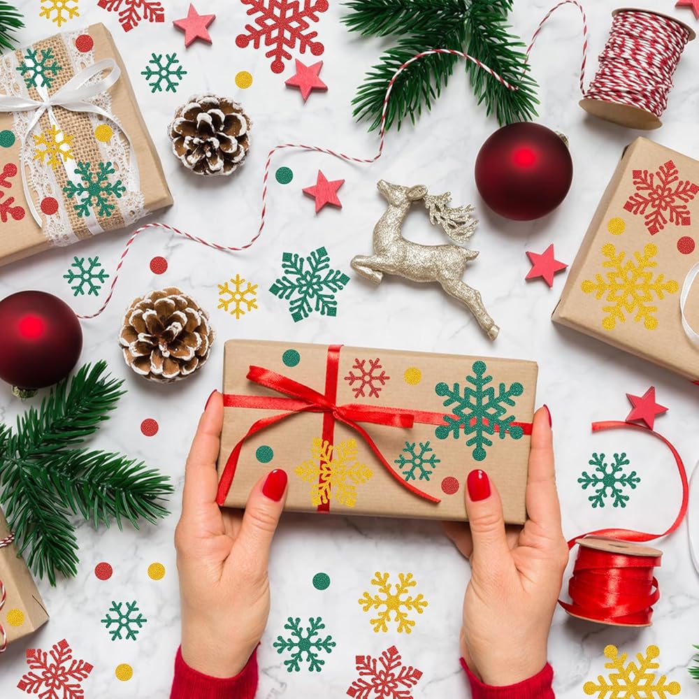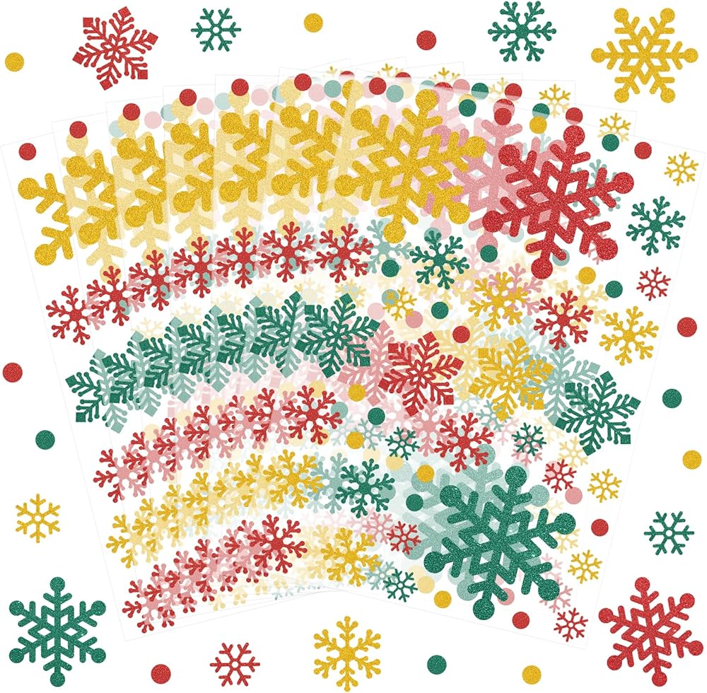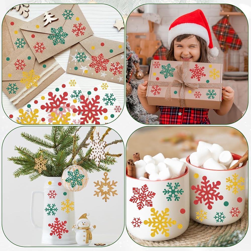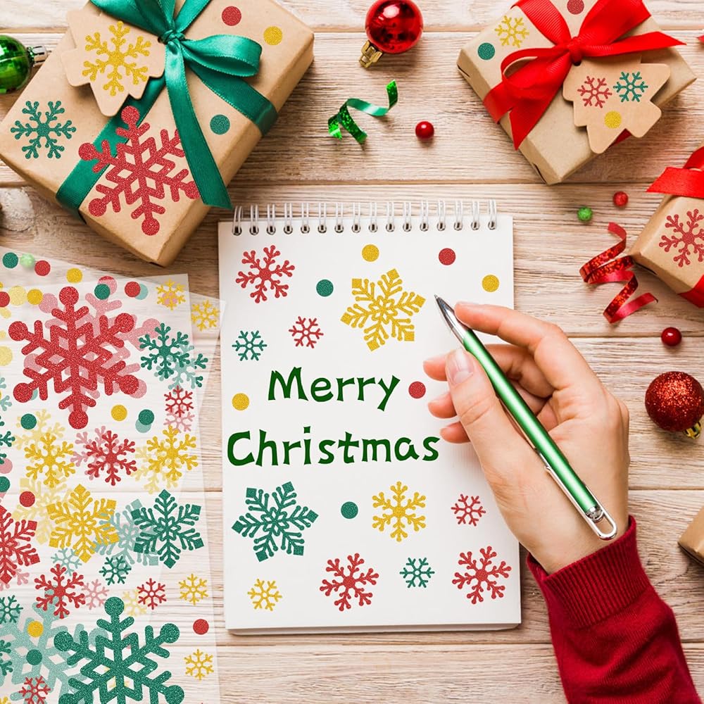 These 10 sheets of 440Pcs glitter Christmas stickers for crafts are specially designed for festive decorations, aiming to add a touch of sparkle and joy to your celebrations. Each glitter snowflake envelope seal sticker carries a strong festive atmosphere and is the perfect winter Christmas decoration.