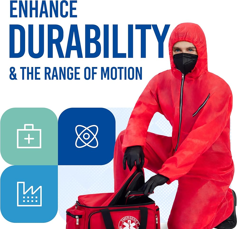 【Enhanced Breathability and Long-lasting Comfort】PPSB laminated with PE film provides excellent protection. This coverall provides enhanced durability, breathability and comfort to the workers.