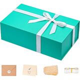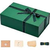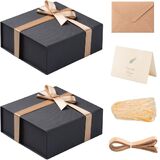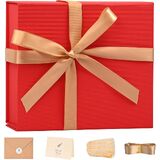 LIFELUM Black Gift Box 8 x 7 x 3 inch, Gift Box with lid Magnetic Closure Box Sturdy Box for Gift Includ Greeting Cards,Ribbon,Shredded Paper Filler for Presents (1 Pcs)