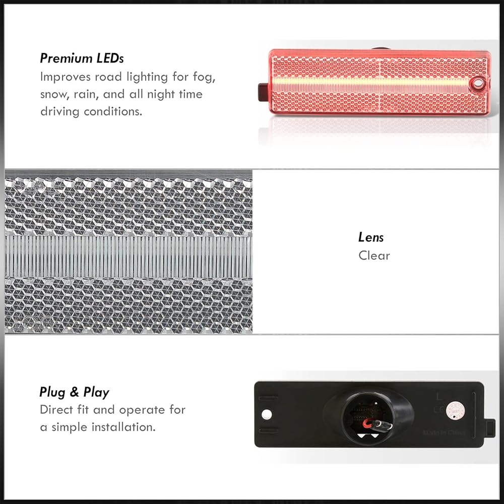 AJP Distributors Clear Red LED Rear Bumper Side Markers Lights Lamps Compatible/Replacement For Chevrolet Chevy Camaro 1993 1994 1995 1996 1997 1998 1999 2000 2001 2002 93 94 95 96 97 98 99 00 01 02