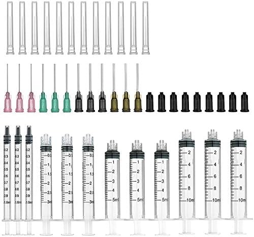 VALUE PACK-You will receive 1ml, 3ml, 5ml, 10ml Syringes each 3pcs, 12pcs Blunt Tip Needles, 12pcs Caps. Each syringe is individually sealed